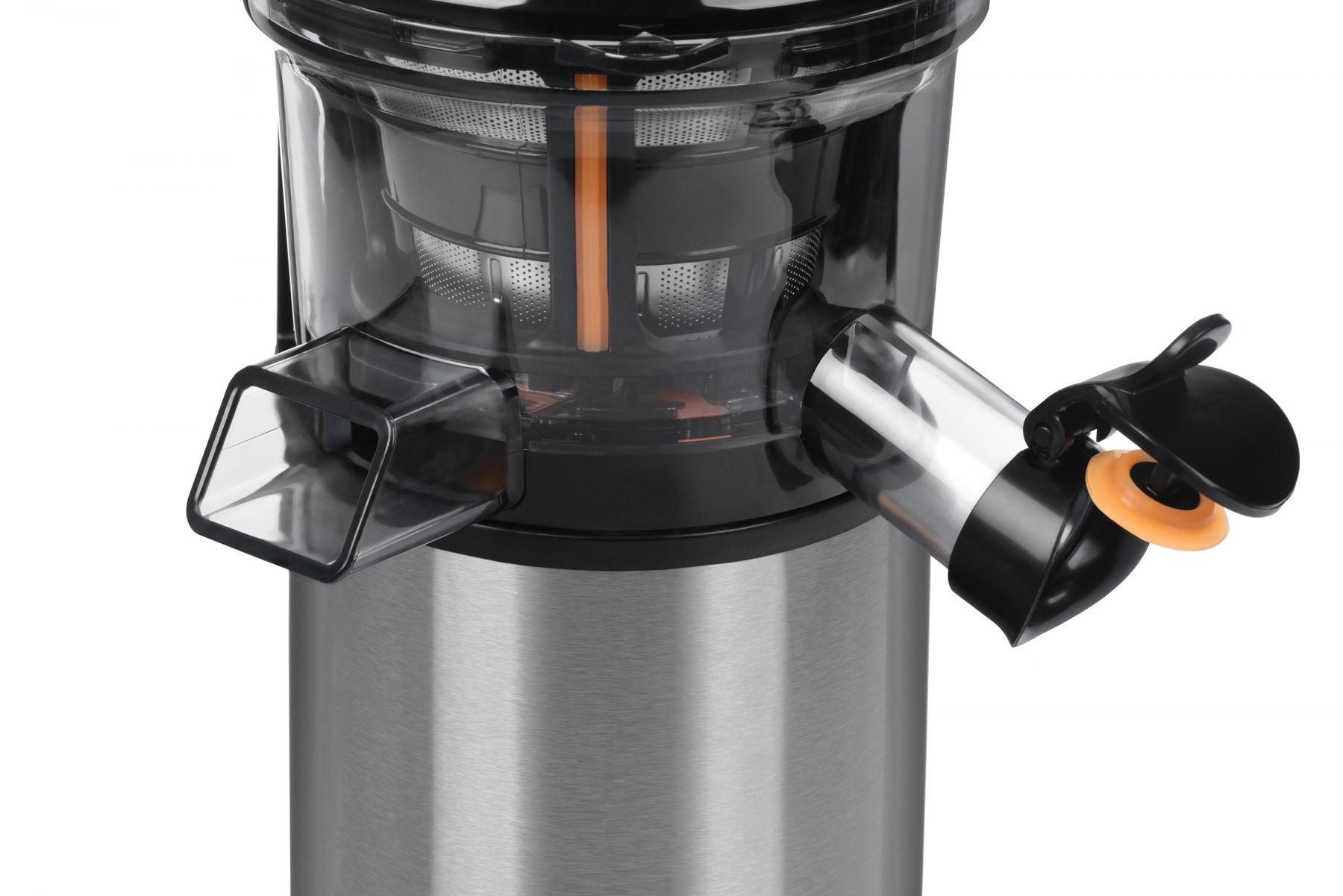 Шнековий соковитискач для приготування соку з різноманітних фруктів, овочів, ягід та навіть зелені і горіхів. Низькошвидкісна технологія витискання забезпечує максимальну екстракцію поживних та корисних речовин без окислення, з мінімумом відходів та сухою макухою. Компактні розміри та продуманий дизайн сприяють простому та швидкому очищенню без зайвих зусиль.