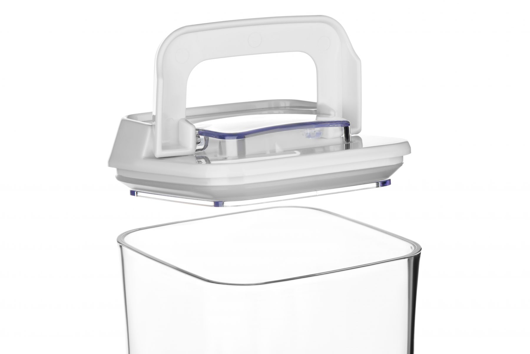 Прозорий пластиковий контейнер для сипучих продуктів з вакуумною кришкою.