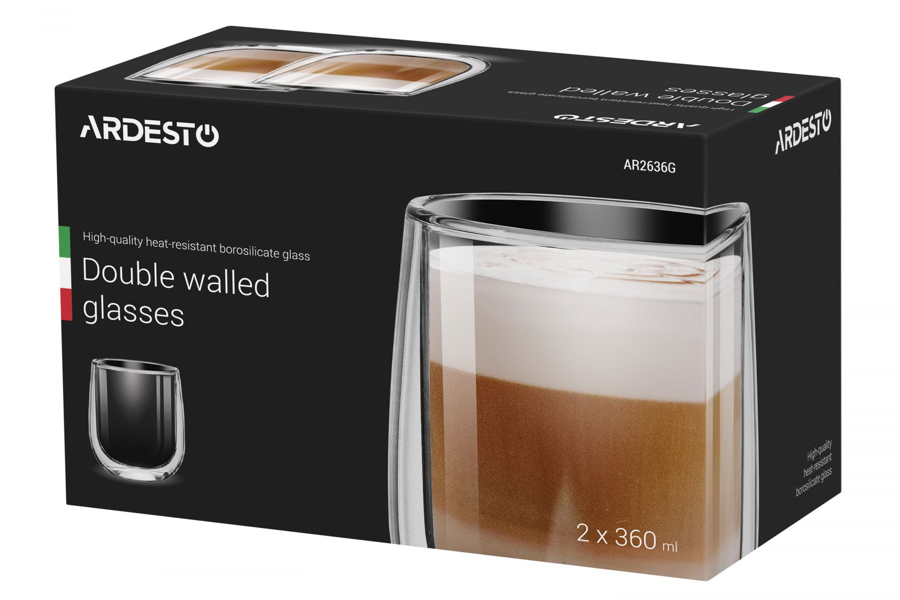 Набір чашок Ardesto з подвійними стінками, 360 мл, H 10,5 см, 2 од., боросилікатне скло