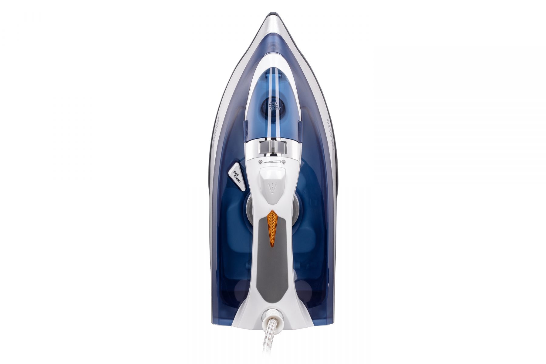 Праска у синьому кольорі з потужністю 2200 Вт, керамічним покриттям підошви, резервуаром на 320 мл, функцією пари, а також захистом від накипу та системою "крапля-стоп".