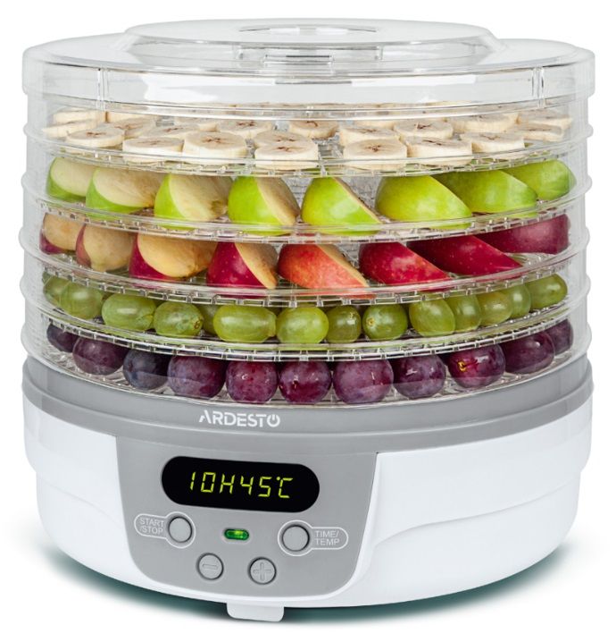 Сушка для продуктів Ardesto FDB-5321T - 250Вт/ 5 піддонів вис. 3см/ діаметр 32см/ рег. темп./ таймер/ біла
