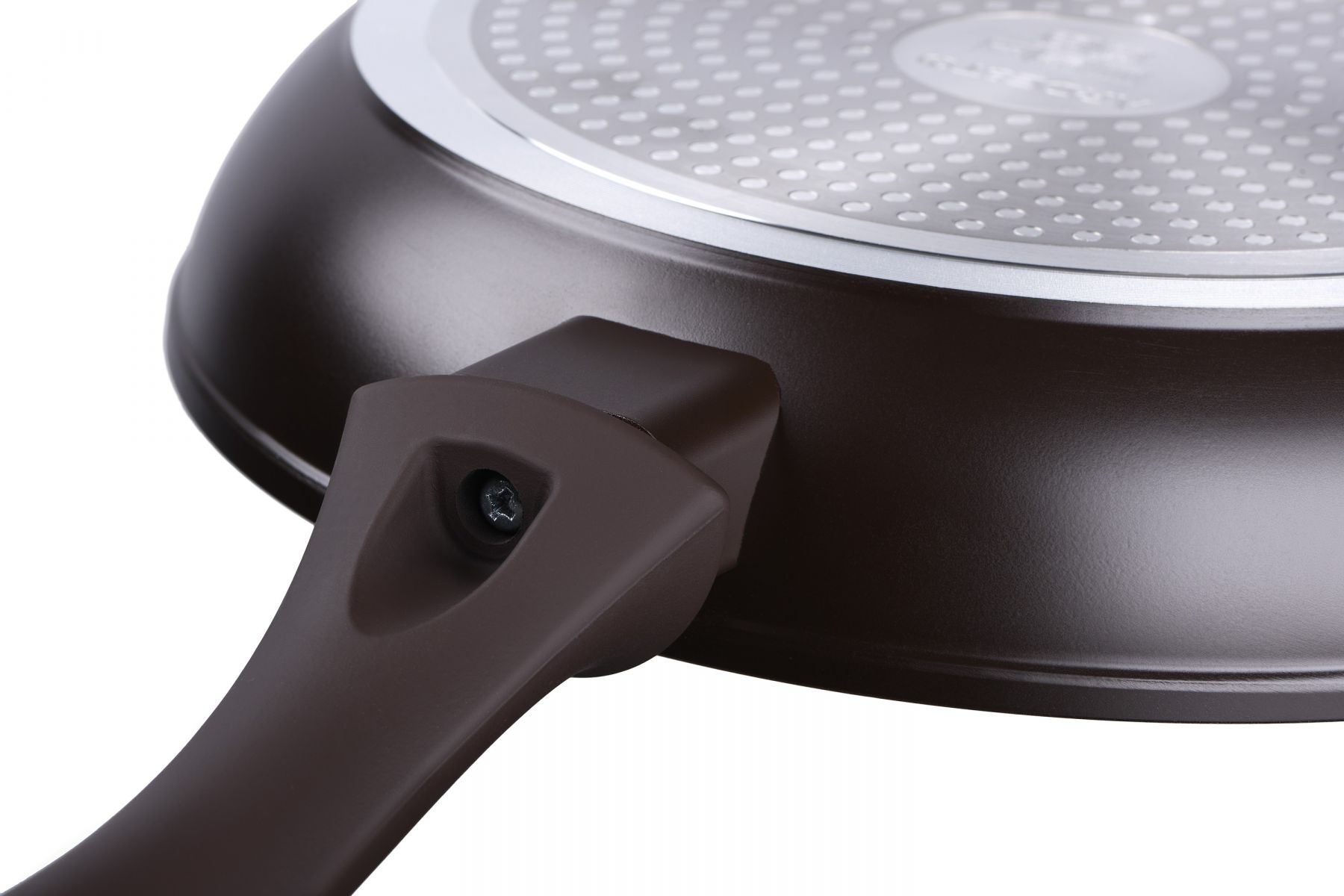 Класична сковорода серії Terra Nature виготовлена з кованого алюмінію у коричневому кольорі. Внутрішня частина пофарбована у помаранчевий. У серії посуду Terra Nature використовується антипригарне покриття Fusion. Ручка виготовлена з бакеліта з Soft-touch покриттям. Сковорода сумісна з усіма видами плит, включаючи індукційну.