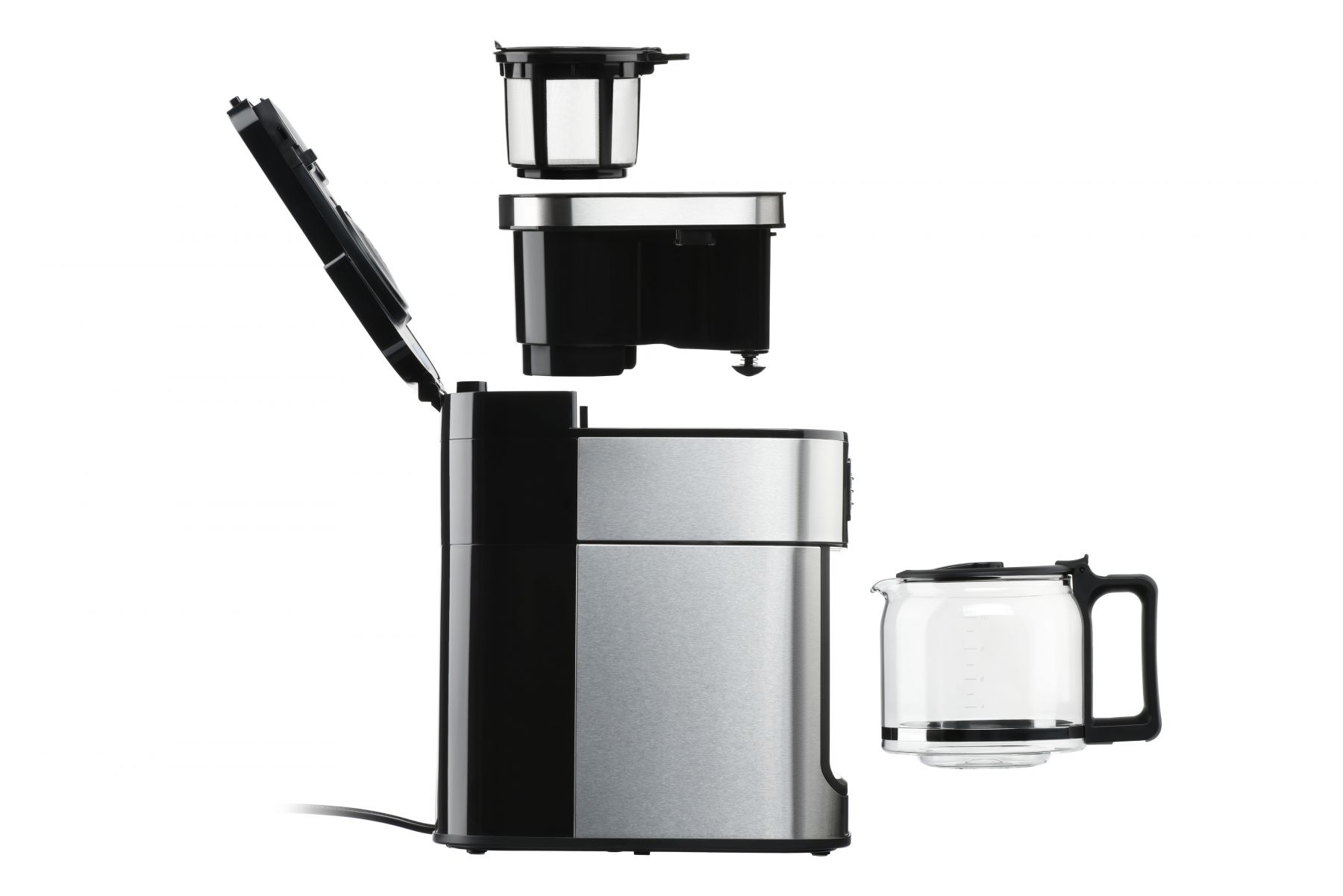 Крапельна кавоварка для меленої та зернової кави потужністю 1050 Вт. Кавоварка YCM-D1200 оснащена кавомолкою, дисплеєм з електронним управлінням та скляним кавником.