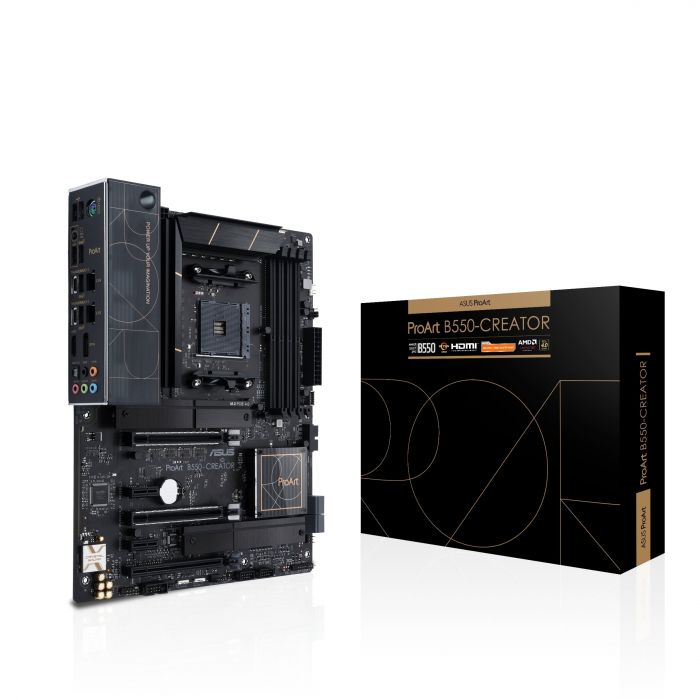 Материнська плата з чіпсетом AMD B550 для творців контенту: платформа AM4, форм-фактор ATX, PCIe 4.0, два порти Thunderbolt 4 (USB-C), два порти 2.5G Ethernet (контролери Intel), два слоти M.2 з радіатором, USB 3.2 Gen2, розвинені засоби інформаційного захисту. Материнська плата ProArt B550-Creator розрахована на використання з новітніми процесорами AMD Ryzen, тому вона оснащується потужною системою живлення і підтримує інтерфейс PCIe 4.0.