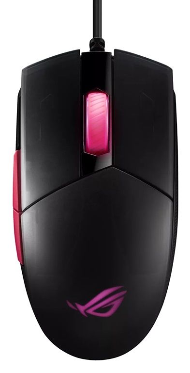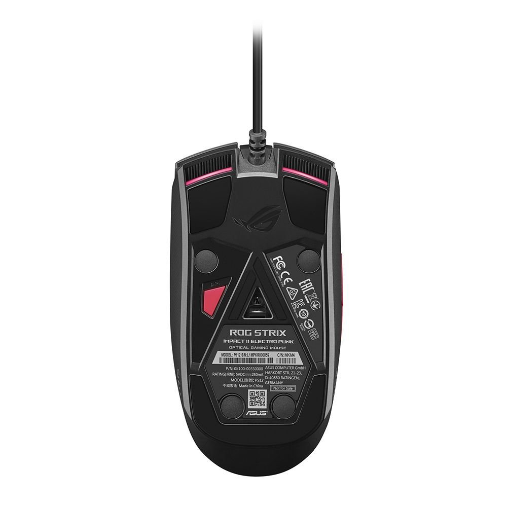 ROG Strix Impact II Electro Punk - це ігрова миша з легким симетричним корпусом, яка відрізняється високою чутливістю за рахунок сенсора з роздільною здатністю 6200 точок на дюйм. За допомогою спеціальної кнопки її чутливість моментально змінюється між чотирма заданими рівнями. Основні кнопки миші використовують шарнірний механізм для зменшення ходу, їх перемикачі можна замінити, щоб продовжити термін служби пристрою. Виготовлений з м'якої гуми кабель не перешкоджає плавному ковзанню миші по столу. Чудові технічні характеристики доповнює чудовий дизайн, родзинкою якого є напівпрозора верхня панель.