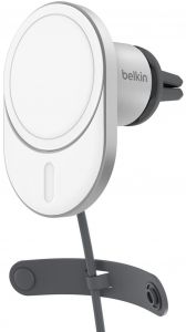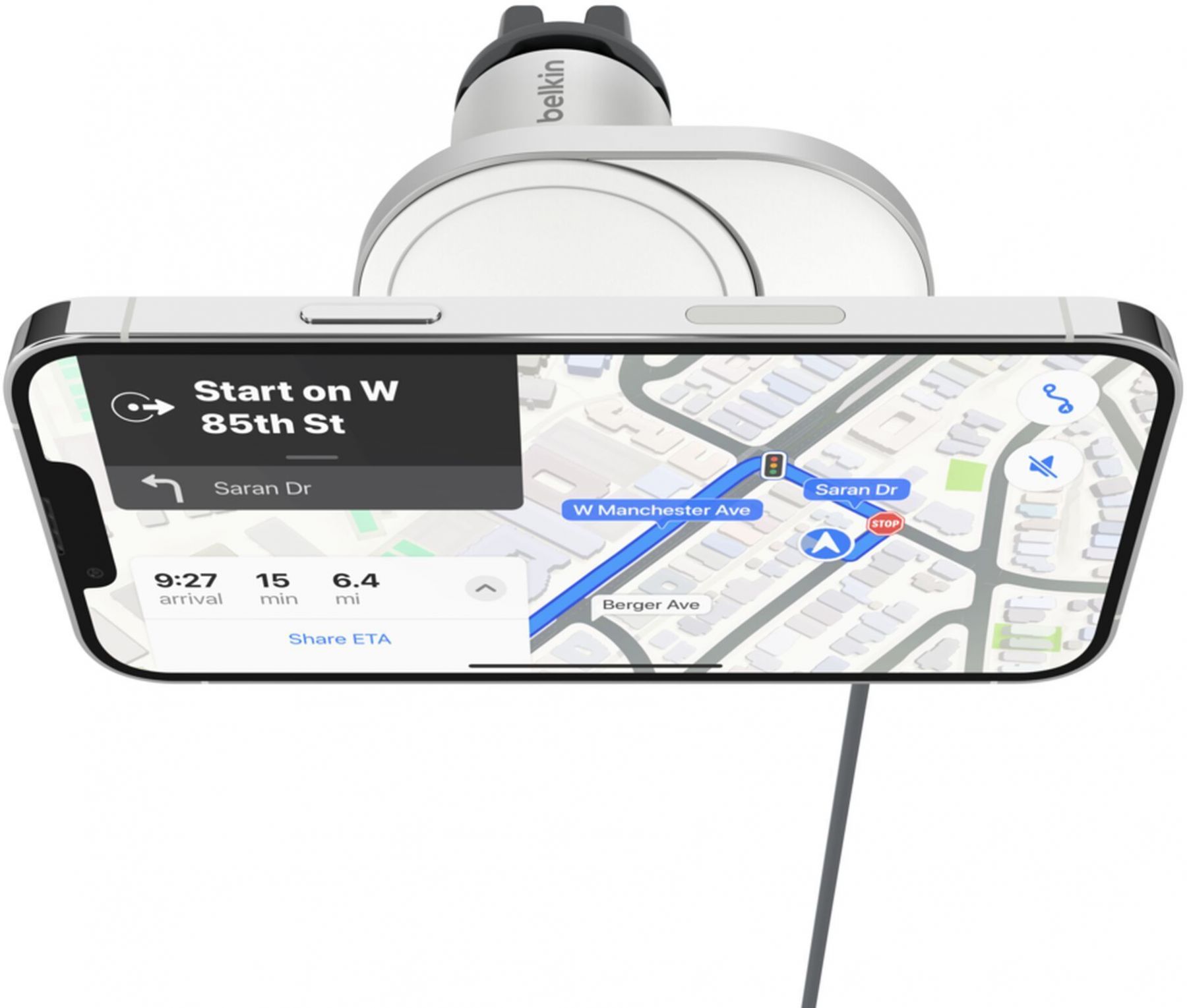Бездротовий автомобільний зарядний пристрій, сумісний з MagSafe, забезпечує до 2 разів швидшу бездротову зарядку за допомогою Qi2для швидкої, легкої та безпечної зарядки сумісного з Qi2 iPhone (серії 12 і вище) потужністю до 15 Вт. Тримач для вентиляційного отвору залишається стабільним під час керування транспортним засобом, а зручне розташування однією рукою дозволяє використовувати як у портретному, так і в ландшафтному режимі.