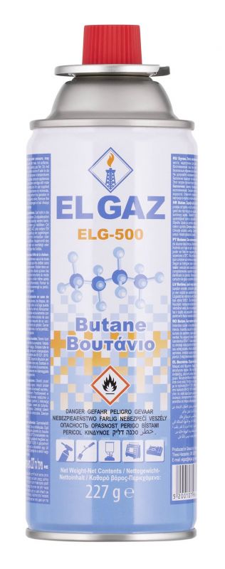 Балон-картридж газовий EL GAZ ELG-500 із цанговим з'єднанням. Балон-картридж (цанговий балон) має 227 г бутанової суміші. Високопродуктивна газова суміш забезпечує високу температуру горіння. Це приблизно на 12% більше енергії, ніж пропан. Використовується з портативними газовими плитами, пальниками, паяльними лампами, що може стати корисним як у поході, на полюванні, рибалці, гаражі або СТО, так і на дачі, домашніх умовах.