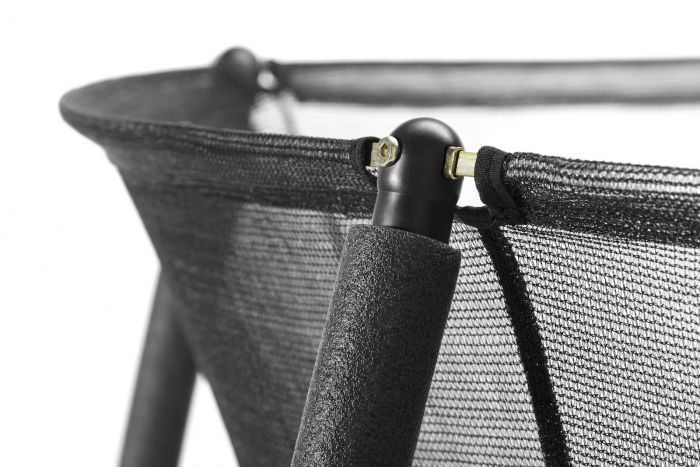 Сталевий каркас міцного батута Salta Comfort Edition виконаний з оцинкованої сталі з чорним глянцевим покриттям. Конструкція сталевого верхнього кільця утримує захисну сітку в натягнутому положенні, що дозволяє м'якій сітці з дрібними осередками надійно захищати дітей і дорослих від падіння. Крім того, батут оснащений спеціальним захисним поролоновим матом товщиною 20 мм і шириною 29 см, що покриває оцинковані конічні пружини системи батута і захищає від попадання між ними ніг і рук під час стрибків. Двостороння блискавка забезпечує легкий доступ всередину батута і дозволяє легко закривати Salta Comfort Edition з внутрішньої сторони.