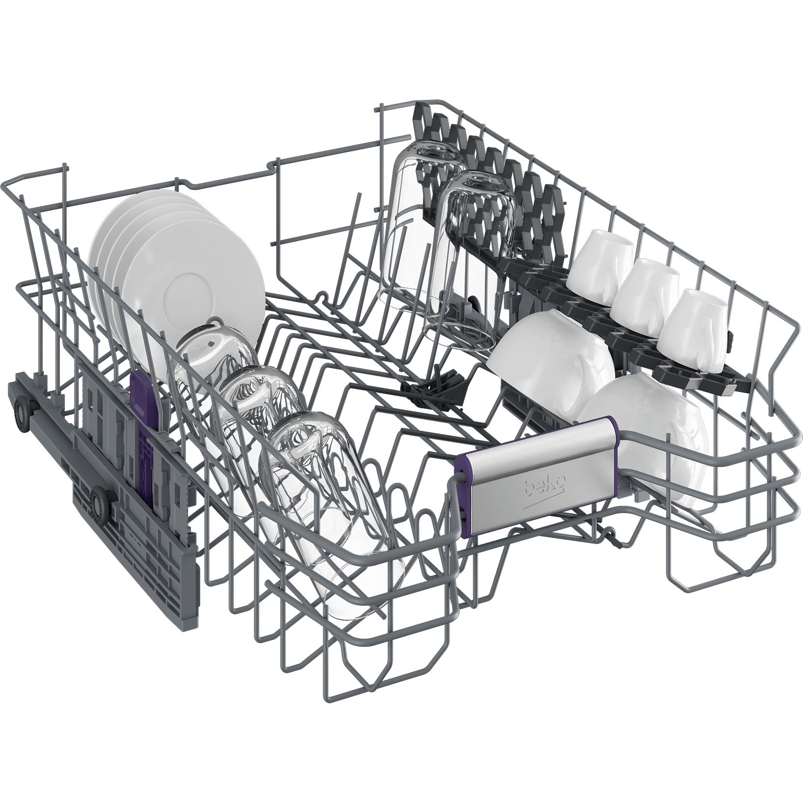 Короби для посуду:Верхній короб із можливістю регулювання по висоті, 2 полички для чашок у верхньому коробі