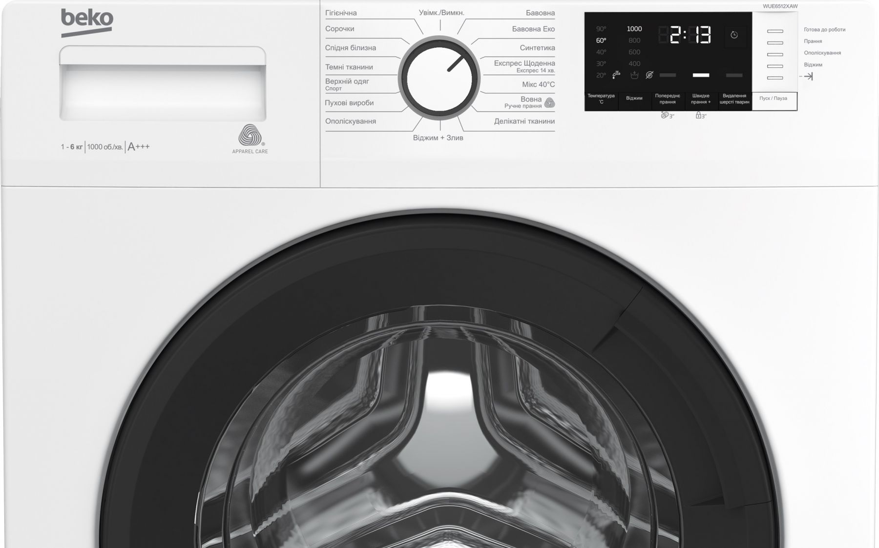 Пральна машина з фронт. зав. BEKO WUE6512XAW, 6кг, 1000, A+++, 42см, Дисплей, Білий