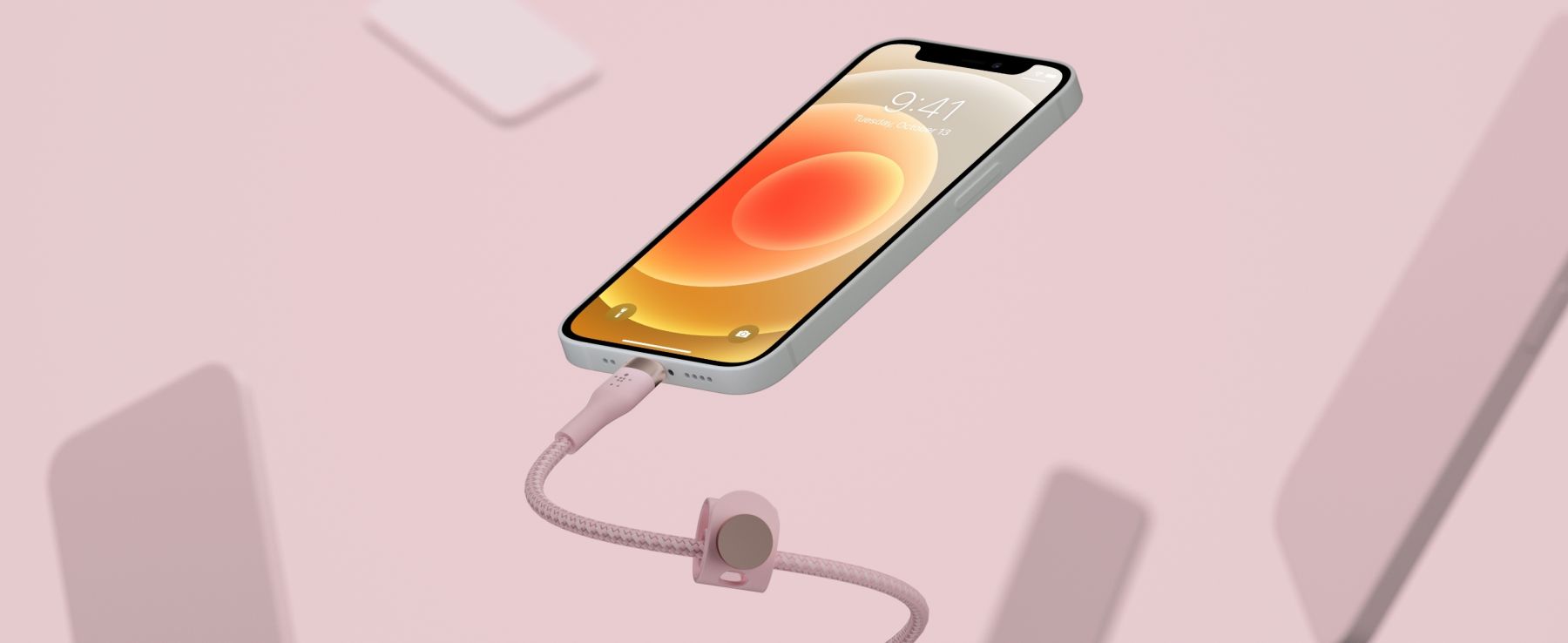 Кабель Belkin USB-A - Lightning плетений, силіконовий, з ремінцем на магніті, 1м, рожевий