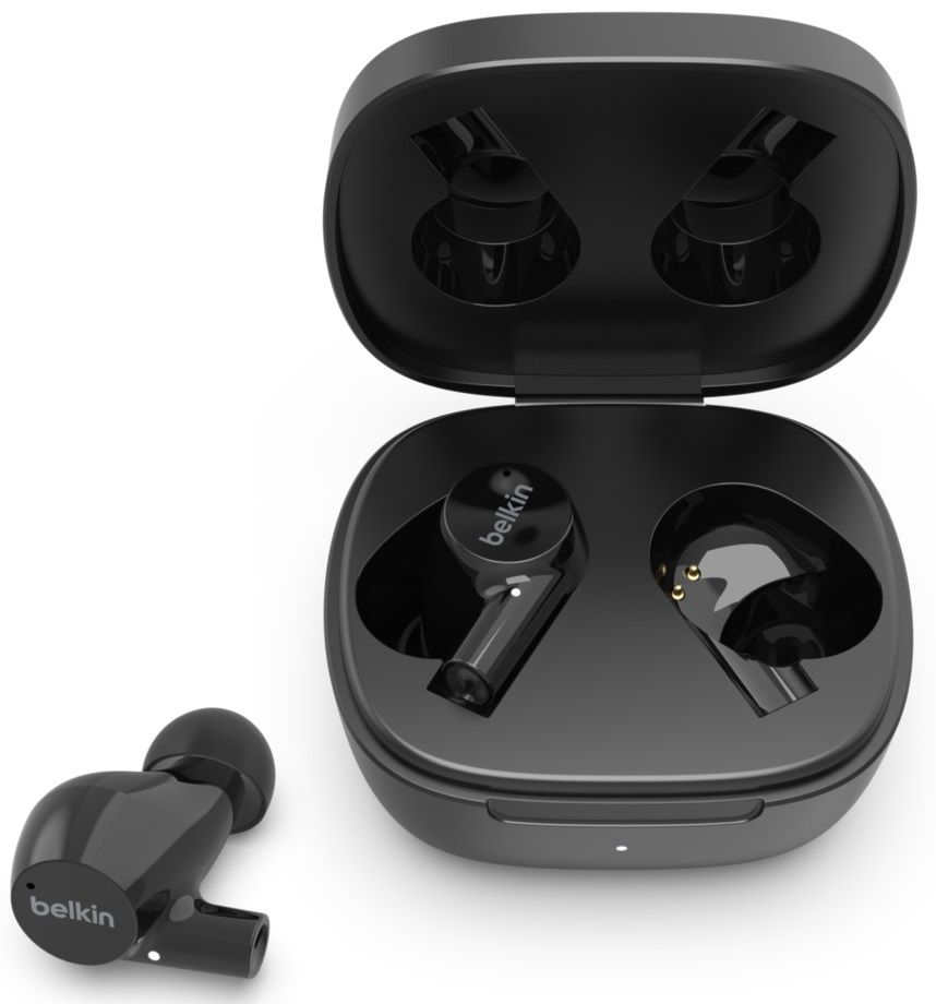 Бездротові навушники Belkin Soundform RiseTrue Wireless створені відмінної автономності до 7 годин з навушниками і ще 24 години з футляром для бездротової зарядки. Водонепроникність IPX5 захищає їх від дощу або сонця, а прості у використанні елементи керування дозволяють змінювати гучність, перемикати треки та приймати дзвінки – і все це у вас під рукою.