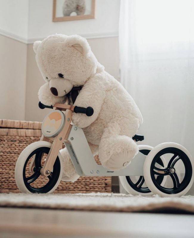 Ваша дитина зможе вирушити назустріч пригодам на цьому чудовому дерев'яному триколісному велосипеді, який перетворюється на балансир. У версії триколісного велосипеда ваша дитина з 18 місяців розвиватиме свої моторні навички, а у версії балансира, у віці близько 3-х років, вона навчиться зберігати рівновагу. Проста модифікація дозволяє змінити задні колеса, щоб залишити лише одне з них.