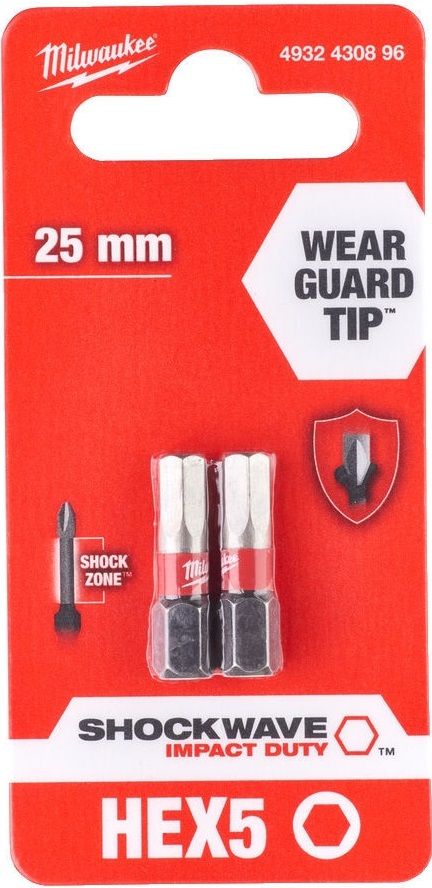 Біти Milwaukee Shockwave, набір 2шт, Hex5х25мм