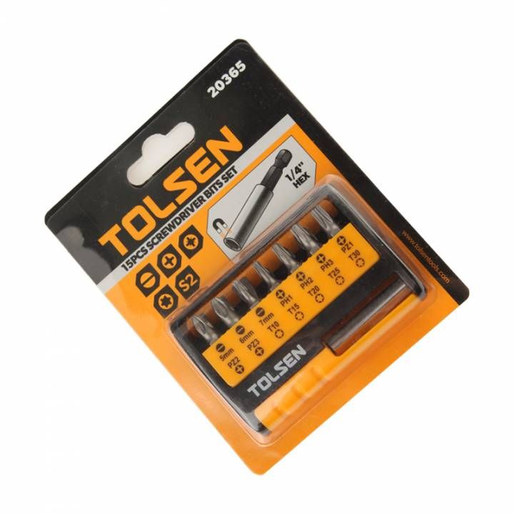 Біти Tolsen, набір 15шт, подовжувач магнітний, SL,PH,PZ, T, кейс