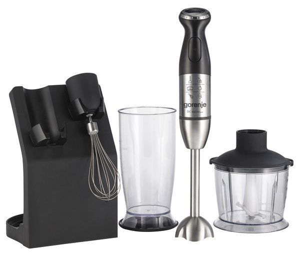 Блендер Gorenje HBC807QB/800 Вт виконий з металу та практичного пластику, а також відрізняється простотою кріплення насадки - вона прикручується до ручки. У комплекті йдуть ємності для подрібнення і збивання, а однією з кирисних функцій є імпульсний режим. Увімкнення відбувається натисканням кнопки. Блендер має плавне регулювання швидкості.
