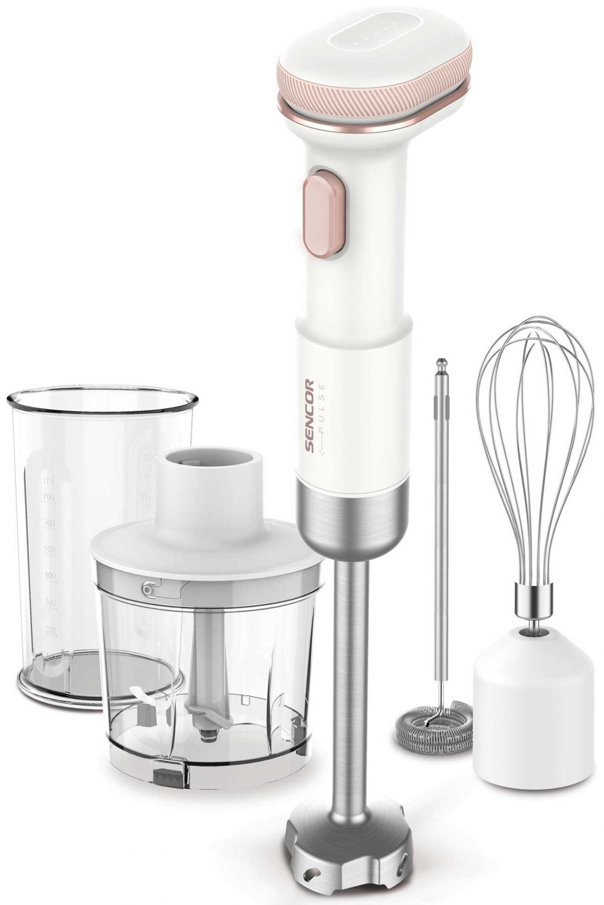 Блендер Sencor заглибний Pulse, 180Вт, 4в1, чаша-700мл, безпровідний, USB-C, капучинатор, біло-рожевий