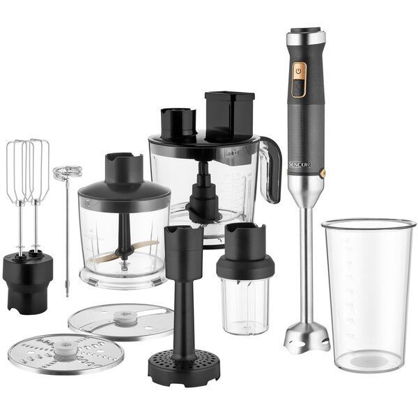 Блендер заглибний Sencor, 1500Вт, 10в1, чаша-800мл, млин для трав, вспінювач молока, чорний