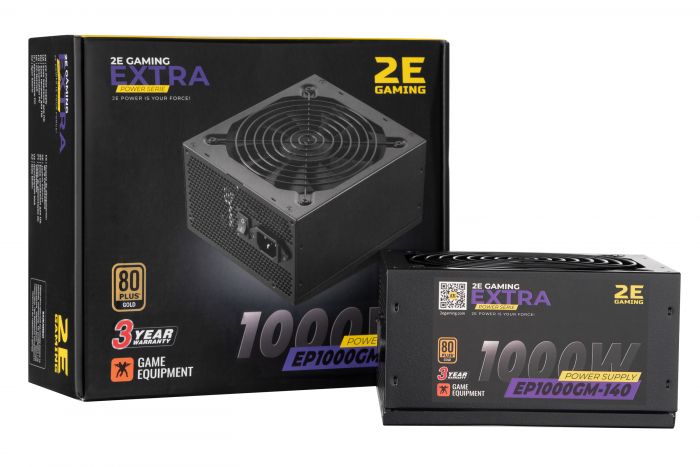 Блок живлення 2E GAMING EXTRA POWER (1000W), >90%, 80+ Gold, 140mm, 1xMB 24pin(20+4), 2xCPU 8pin(4+4), 4xMolex, 6xSATA, 8xPCIe 8pin(6+2), Fully Modular