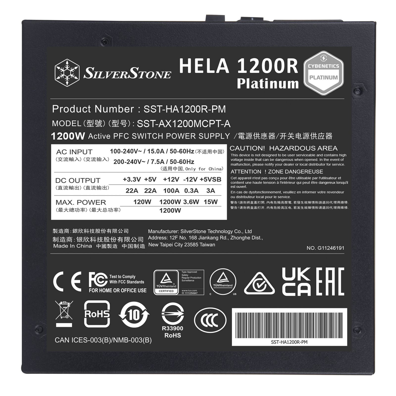 Блок живлення SilverStone Hela Cybenetics HA1200R-PM (1200W), >90%, 80+ Platinum, 135mm, 1xMB 24pin(20+4), 2xCPU 8pin(4+4), 3xMolex, 12xSATA, 6xPCIe 8pin(6+2),1x(12+4)pin 12VHPWR, 1xFDD, Fully Modular