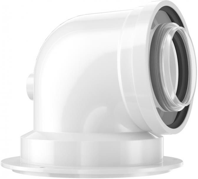 Кутовий адаптер Bosch FC-CA60-87 призначений для підключення котла до димоходу. Сполучний елемент монтується до коаксіального димаря.