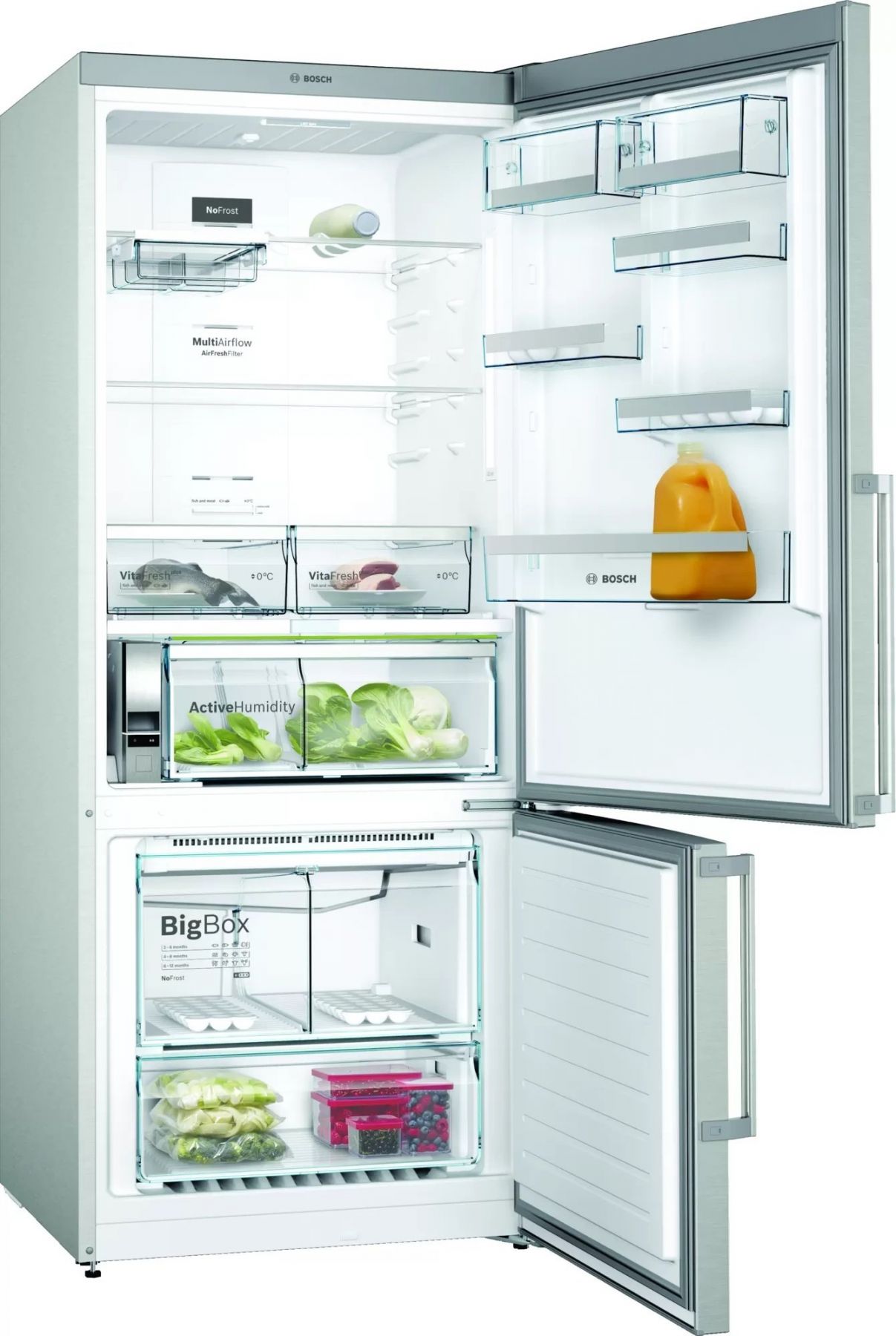 Окремовстановлюваний холодильник з нижньою морозильною камерою. «Активне зволоження» (Active Humidity) – це нова система свіжості, яка забезпечує розпилення води в контейнері для овочів, щоб вони лишалися свіжими до 4-х разів довше. Холодильник XXL: забезпечує набагато більше місця для ваших продуктів. Збільшіть можливості свого холодильника. Коли вам потрібен просторий холодильник, який не займає багато місця на вашій кухні, наші холодильники з об'ємом XXL допоможуть вам. Трохи ширше стандартної моделі, вони дозволяють помістити всередину цілі дека, великі кавуни та інші громіздкі предмети. Велика внутрішня частина полегшує перегляд вмісту, а також забезпечує чудову зручність зберігання. Перфект-фіт: різноманітні можливості розташування приладу. Розташовуйте холодильник без обмежень. Завдяки передовій та унікальній технології конденсаторів, холодильник можна розміщувати без будь-яких обмежень, навіть біля бічних стін кухні, оскільки конденсат не утворюється. Сучасне світлодіодне освітлення LED - яскраве та енергоефективне впродовж усього строку експлуатації приладу. Варіозона - оптимальна ергономіка внутрішнього простору морозильного відділення завдяки скляним поличкам та боксам, що легко виймаються.