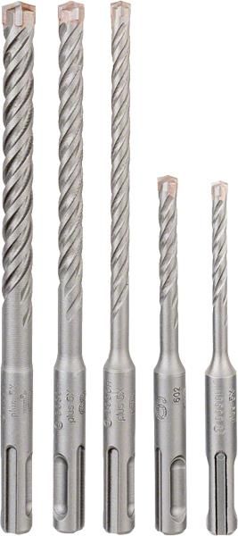 Набір з п'яти зносостійких свердел Bosch SDS-Plus-5X. Бури з центрирующим вістрям точно проходять армований бетон, цегляну кладку, бетон. Чотири ріжучі кромки свердла попереджають його застрявання в арматурі. Чотири спіралі ефективно відводять пил.