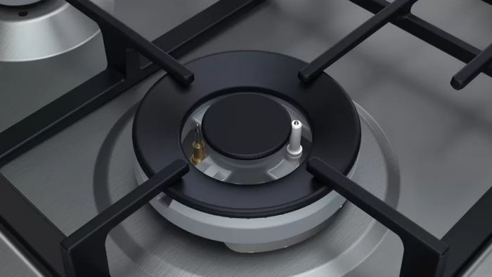 Варильна поверхня газова Bosch PGH6B5O93R -60см/чавун/газ-контроль/WOK/нерж. Газова варильна поверхня з фронтальним розташуванням перемикачів: зручне керування вибраними конфорками з передньої панелі. 1 конфорка підвищеної потужності, 2 стандартні конфорки, 1 економічна конфорка.
