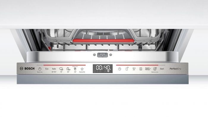 Повністю вбудована посудомийна машина Бош на 9 комплектів посуду. 4 температурні режими і 4 програми миття. Система коробів VarioFlex Pro зі спеціальними маркерами червоного кольору. Два коромисла DuoPower в верхньому коробі. Система рівномірного розчинення миючого засобу DosageAssist.