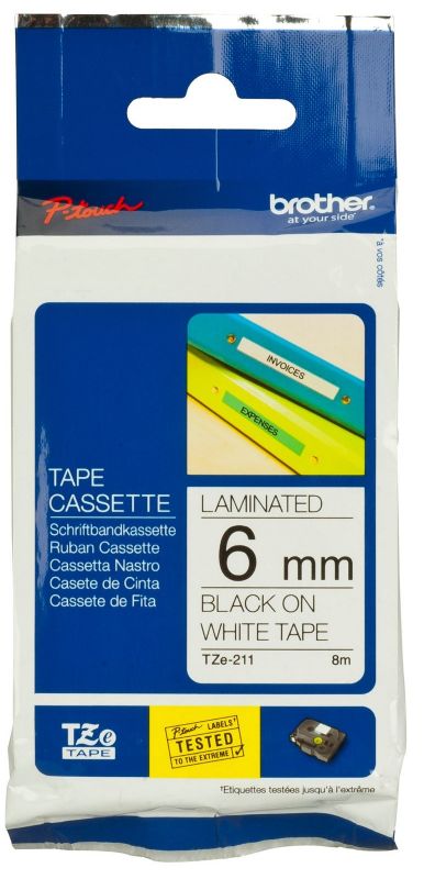 Стрічка Brother 6mm Laminated white, Print black