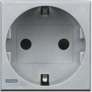 Розетка 2P + T 16A 250 В АС з бічними контактами заземлення - німецький стандарт - екрановані контакти (доступні зі світлодіодом для сигналізації наявності напруги) - алюміній.