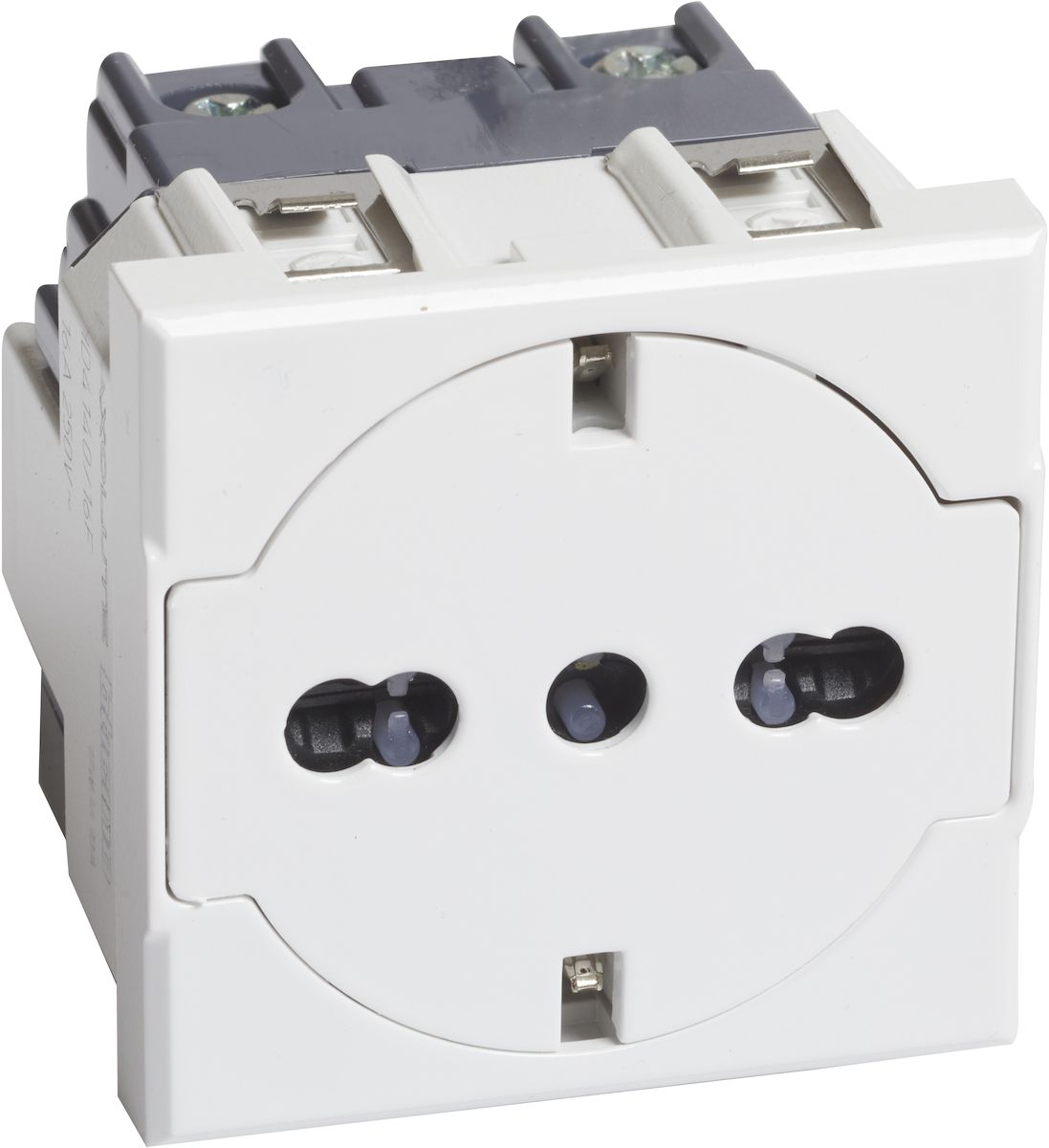 Bticino Axolute Розетка 2К + З, 10/16 А, із захисними шторками, колір білий, німецький стандарт