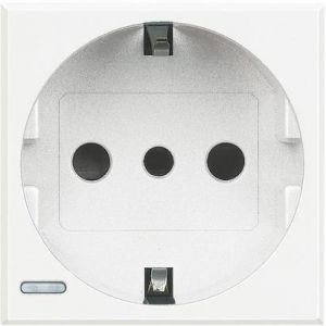 Розетка P30 2П + З 16A 250 В АС з бічними контактами і центральним контактом заземлення - для штепсельних вилок німецького стандарту та штепсельних вилок 10A зі суміщеними штирями - міжосьова відстань 19 мм - екрановані тюльпанові контакти (доступні зі світлодіодом для сигналізації наявності напруги) - білий