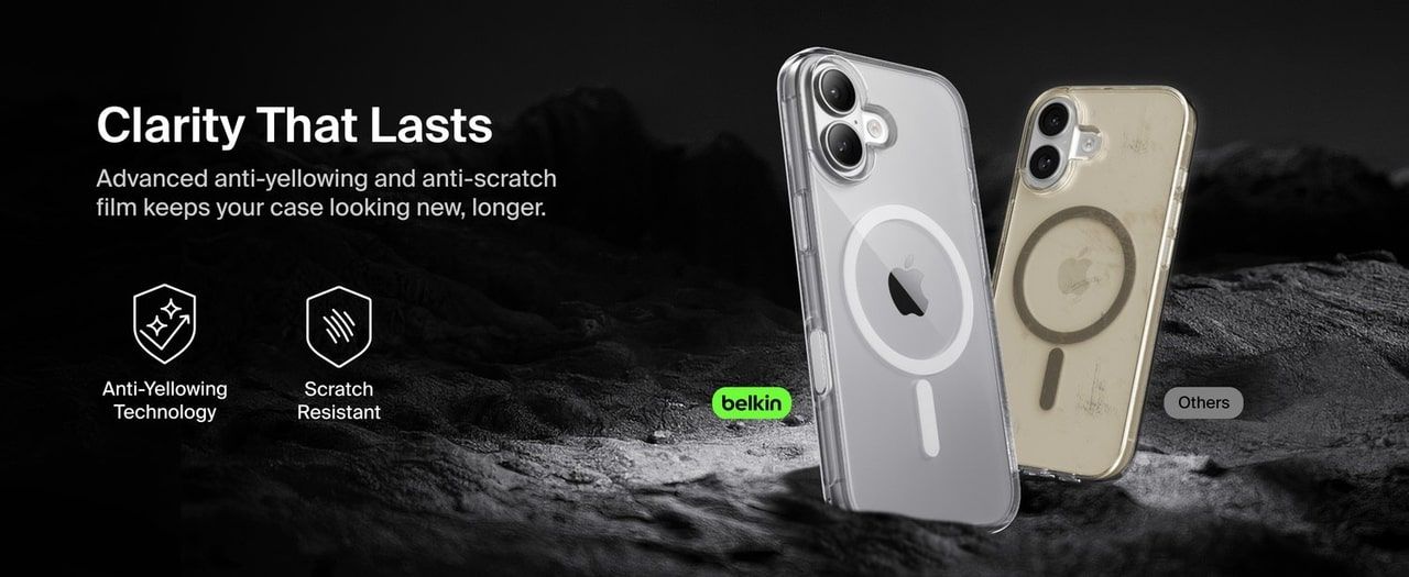 Belkin Clear Series для iPhone 17 (MSA030HQCL, Clear) — прозорий магнітний чохол із захистом від падінь до 4 м, повною сумісністю з MagSafe і комбінованим корпусом TPU + PC. Протиковзна текстура, вигнуті краї, поліровані кнопки та стійке до пожовтіння покриття. Максимальна прозорість, мінімальна вага — ідеально підкреслює дизайн iPhone 17 без компромісів у безпеці.