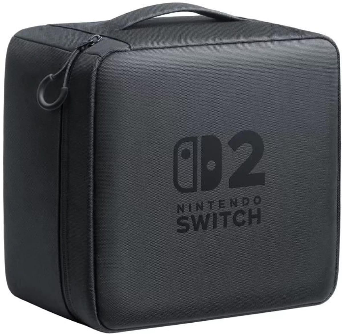 Цей комплект містить футляр для перенесення системи Nintendo Switch 2. У футлярі можна зберігати та переносити все обладнання, необхідне для гри в режимі телевізора, включаючи консоль Nintendo Switch 2, док-станцію Nintendo Switch 2, контролери Joy-Con 2, різні кабелі та до шести ігрових карт.