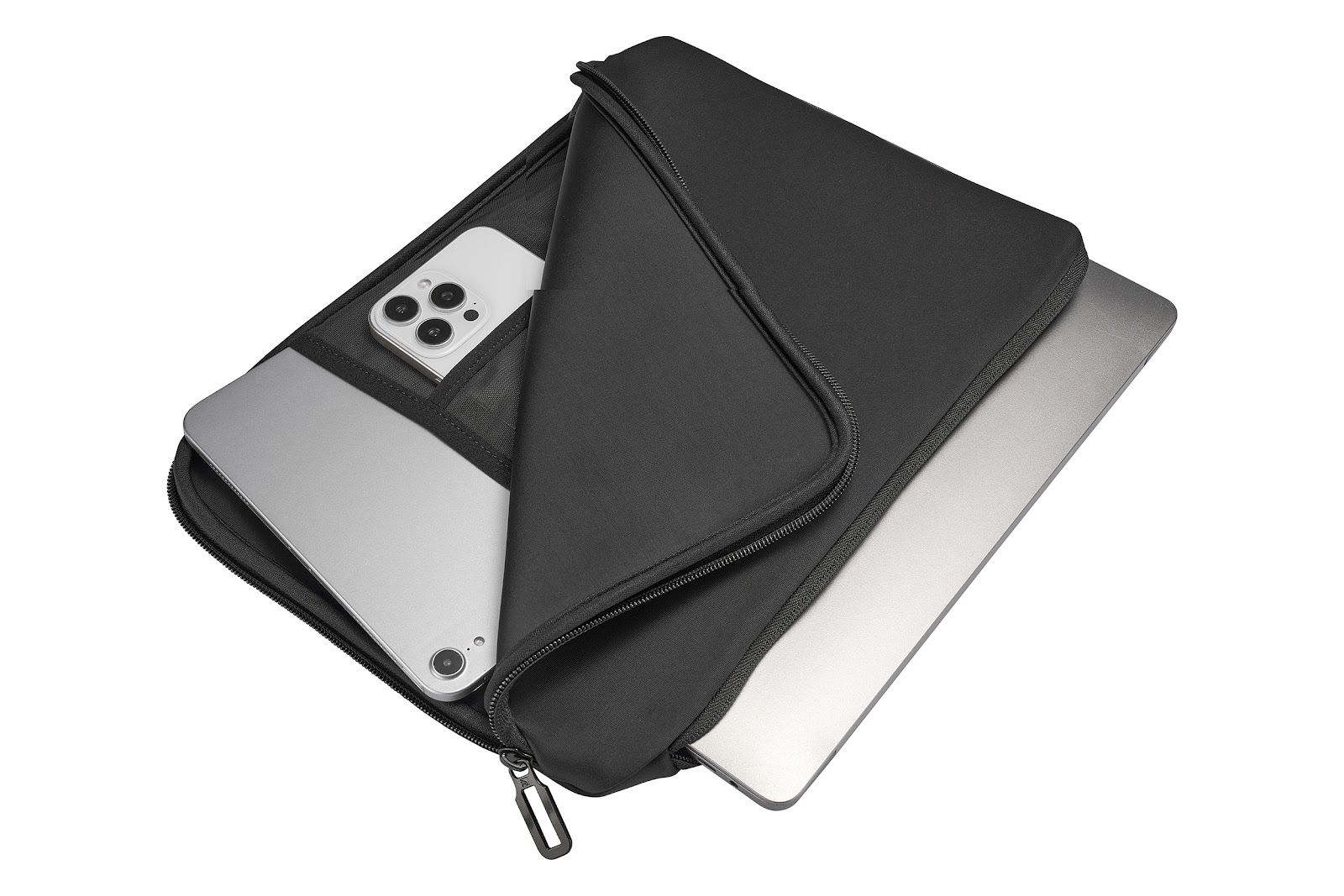 Чохол Tucano Doppio 13"/14" поєднує екологічний підхід і практичність. Два відділення — для ноутбука або планшета та аксесуарів — забезпечують порядок і зручність у щоденному використанні. Протиковзка система фіксує пристрій усередині, а кутові клапани зміцнюють захист під час транспортування. Зовнішній шар із неопрену товщиною 4 мм ефективно амортизує удари. Модель створена з матеріалу, частково виготовленого з переробленого пластику.