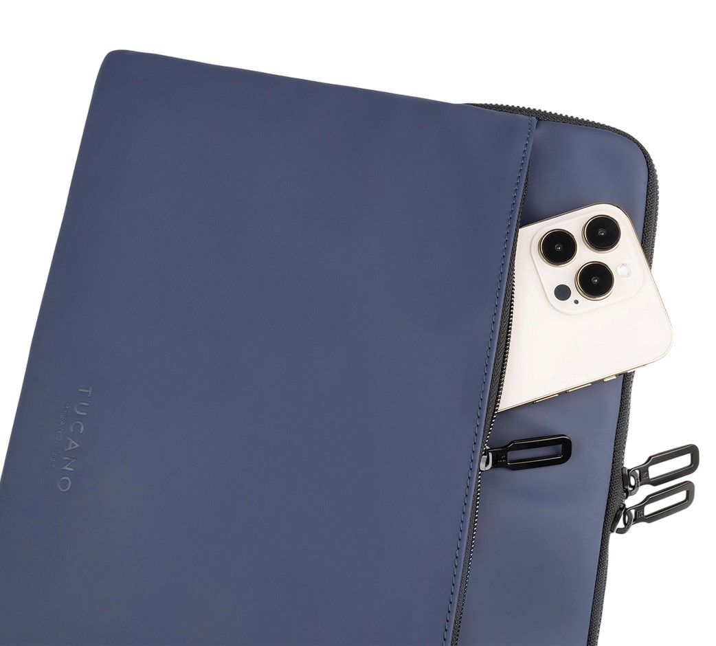 Водонепроникний чохол із прогумованого матеріалу Tucano Gommo для MacBook Pro 16" або для ноутбуків 16". Він має одне м’яке відділення з вбудованими неопреновими кутовими клапанами, які призначені для захисту кутів ноутбука, а також зручну зовнішню кишеню для аксесуарів на блискавці.