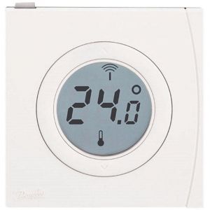 Danfoss Link RS - являє собою настінний датчик температури з трьома кнопакмі управління і монохромним рідкокристалічним дисплеєм з LED підсвіткою. Живиться від 2-х батарейок типу АА.