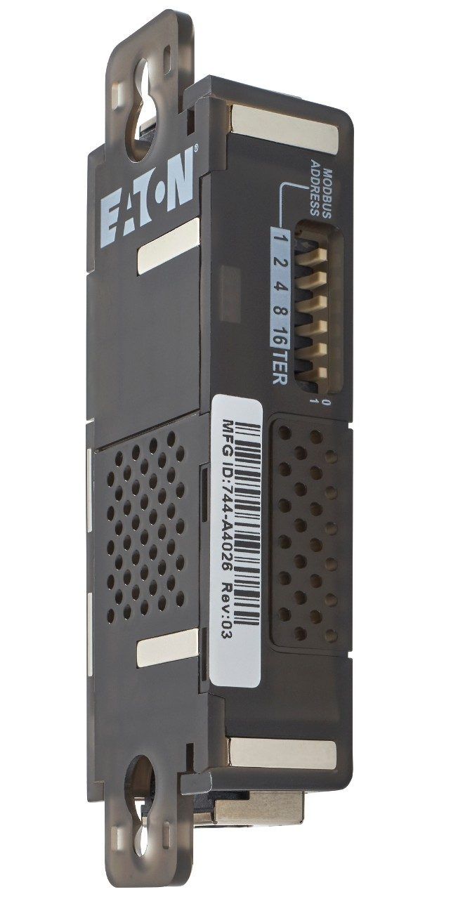 Пристрій контролю навколишнього середовища для UPS другого покоління (EMP) - датчик для збору інформації про температуру і вологість у стійках, а також дистанційного контролю даних про навколишнє середовище ДБЖ за допомогою рішень моніторингу Eaton або стандартного браузера. Кожен EMP забезпечує контроль стану температури для однієї точки, вологості для однієї точки і статус двох сухих контактів.