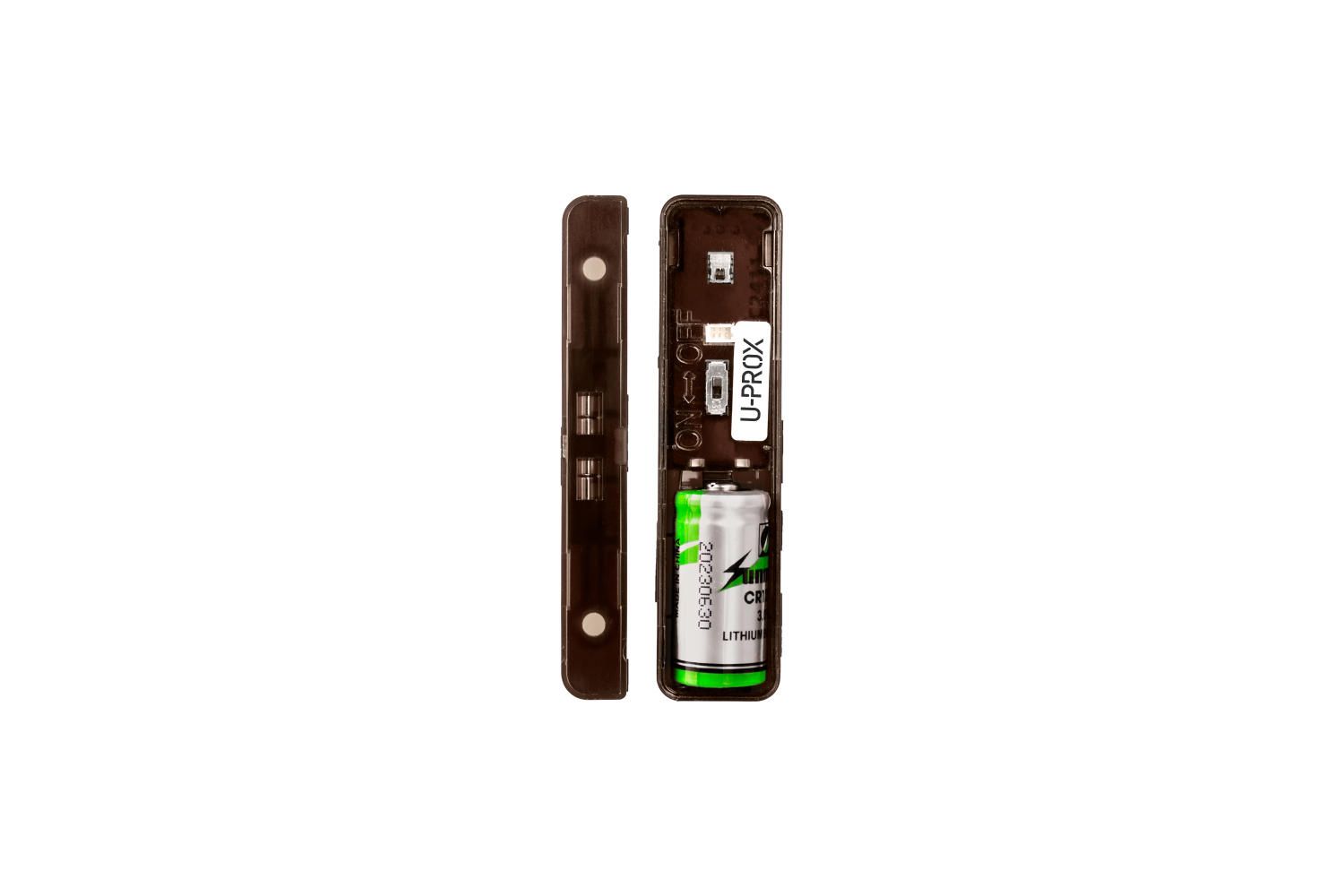 U-Prox WDC — це універсальний бездротовий магнітоконтактний датчик для дверей і вікон, призначений для охоронних систем у житлових або комерційних приміщеннях. Компактний корпус із захистом IP55 має окремий відсік для батареї, що дозволяє швидко замінювати елемент живлення CR123A без доступу до електроніки.