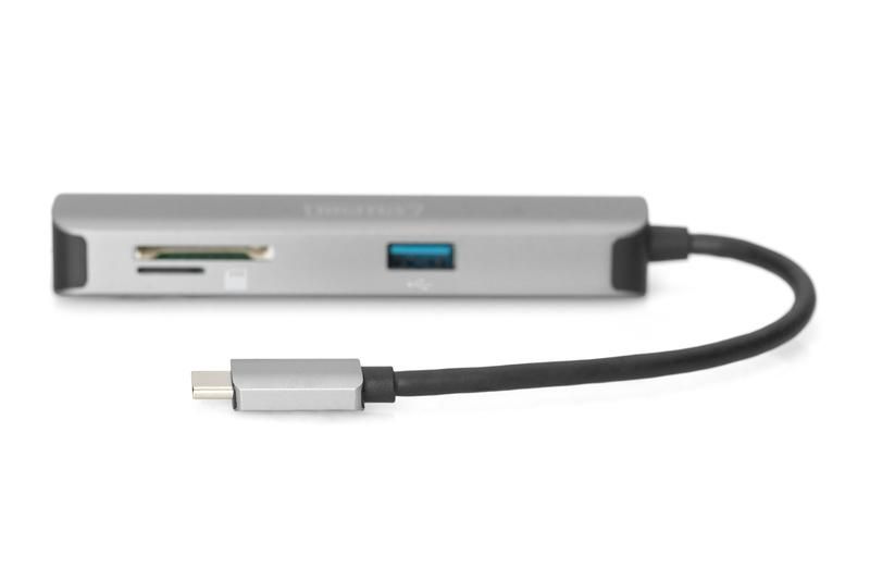 За допомогою адаптера DIGITUS® USB-C™ до HDMI® ви можете підключити додатковий дисплей HDMI® до існуючого пристрою з портом USB-C™. Це дозволяє відтворювати ваш контент на великому моніторі, проекторі або телевізорі з роздільною здатністю 4K. Для підключення іншого периферійного обладнання доступні два додаткові роз'єми USB 3.0. Ви можете навіть підключити додатковий USB-концентратор, щоб збільшити кількість USB-підключень. Вбудований кардрідер може бути оснащений картками SD та MicroSD і може використовуватись для обох носіїв одночасно. Завдяки компактній конструкції з док-станцією DIGITUS® легко подорожувати – вона ідеально підходить для ділових поїздок та презентацій на дисплеях HDMI® усіх типів.