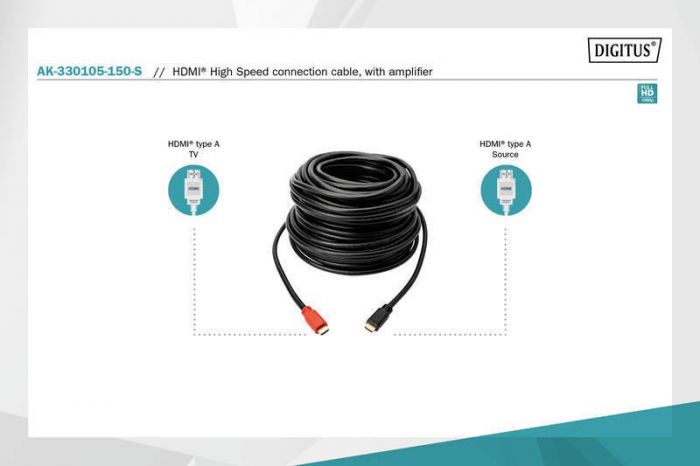 Цей відповідний для Full HD (1080p) та 3D кабель з активним підсилювачем використовується для підключення аудіо / відео пристроїв, таких як Blu-ray-програвач, ігрові планшети або приставки та т. д., наприклад, до телевізора, монітора або комп'ютера.