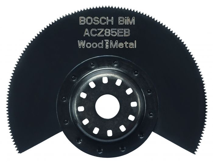 Пиляльне полотно Starlock ACZ 85 EB забезпечує довговічність під час різання деревини або незагартованих металів. Технологія кругового зварювання Bosch створює міцні зубці, що попереджають заклинювання та збільшують термін експлуатації. Тонкі кінці сегментованого полотна дають змогу різати безпосередньо в місцях зі складним доступом. Система кріплення Starlock Snap-In дозволяє швидко знімати та замінювати полотна за 3 секунди, не торкаючись їх.