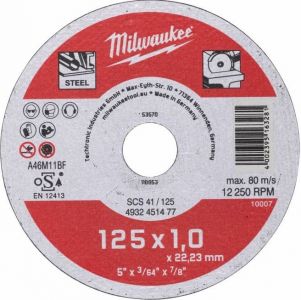 Диск відрізний Milwaukee по металу, 125х1х22.2мм