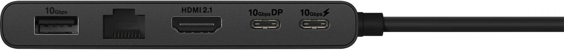 Інші:RJ-45, 1 x USB 3.2 Gen2 Type-C Upstream port for computer sideport (10Gbps / DP1.4 / output: up to 90W), 1 x USB 3.2 Gen2 Type-A ports (10Gbps/5V@2.1A.), 1 x USB 3.2 Gen2 Type-C1 port (DP1.4 or 10Gbps/5V@1.5A), 1 x USB 3.2 Gen2 Type-C2 port (PD 100W or 10Gbps/5V@1.5A)