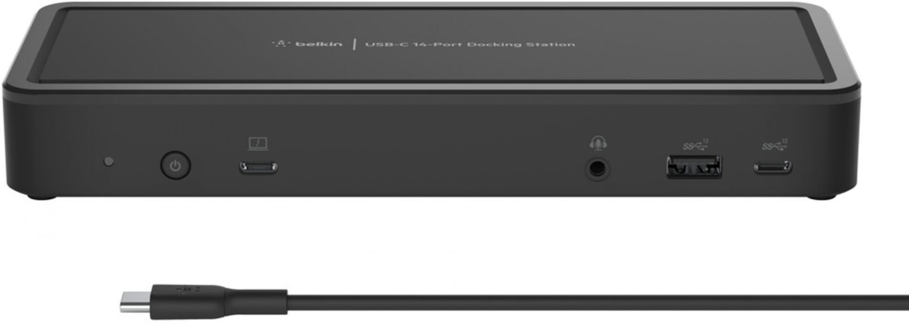 Створіть свій робочий простір за допомогою док-станції, яка розширює можливості під'єднання для офісу, домашнього офісу або аудиторії. Дає змогу під'єднувати до Chromebook до двох розширених моніторів через HDMI або DisplayPort. Ця 14-портова док-станція має прохідну потужність до 65 Вт і швидкість передавання даних 10 Гбіт/с, що дає змогу під'єднуватися та працювати під час заряджання ноутбука.