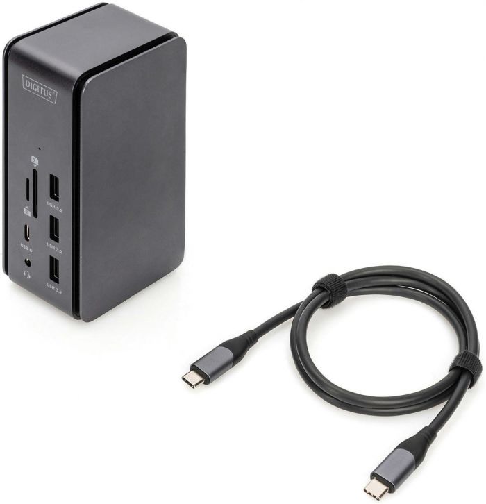 Док-станція USB4 від DIGITUS розширює можливості вашого ноутбука за рахунок 14 додаткових портів, використовуючи лише один роз'єм USB-C. Серед інших функцій - 1 x DisplayPort і 1 x HDMI відеопорти для підключення монітора, проектора або телевізора. Завдяки підтримці двох моніторів вони можуть працювати одночасно. У Windows відеосигнал можна виводити одночасно на два різні відеопорти (режим SST), а також 2 різні відеосигнали можна виводити на 2 графічні порти (режим MST).