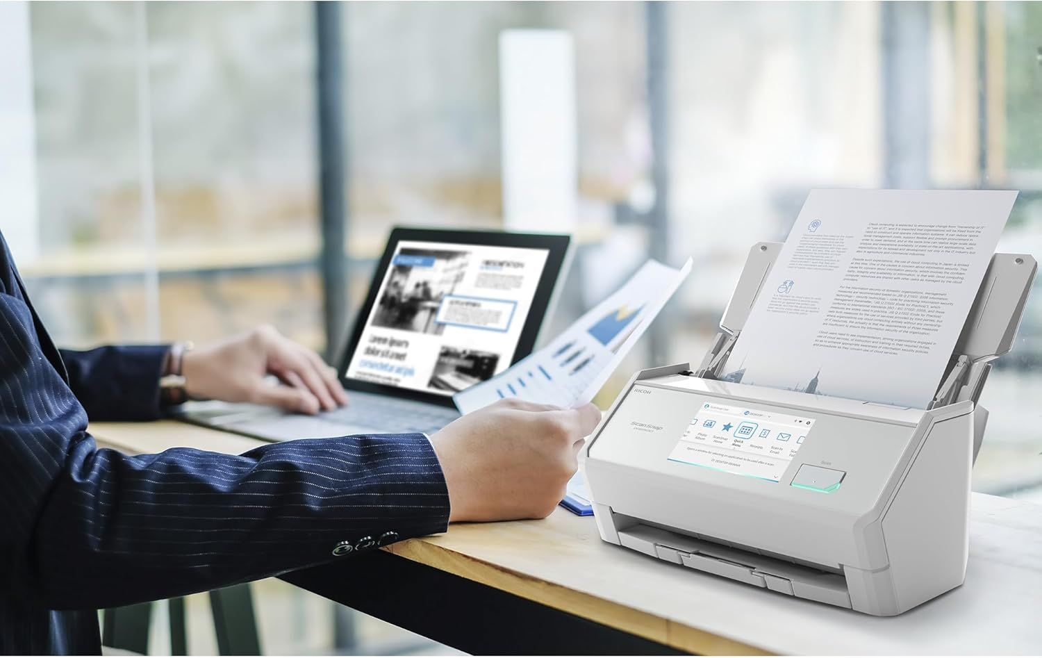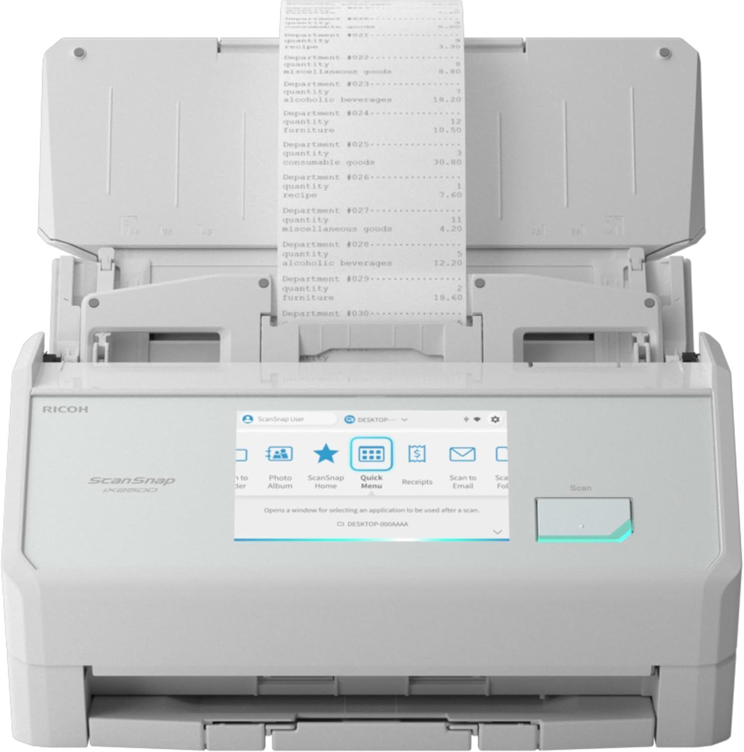 Ricoh ScanSnap iX2500 White (PA03860-B101) — професійний настільний сканер А4 2025 року з продуктивністю 45 стор/хв (90 зображень/хв), двостороннім АПД на 50 аркушів, сенсорним екраном 4.3" та підтримкою Wi-Fi 6, USB 3.2 і Bluetooth 5.2. Забезпечує швидке сканування документів, візиток, чеків, фотографій з автоматичним розпізнаванням, корекцією викривлень і видаленням порожніх сторінок. Має світлодіодне підсвічування для точної передачі кольорів і працює з ПК, Mac, iOS, Android, хмарними сервісами (Google Drive, Dropbox, Evernote тощо). Ідеальний для дому, малого офісу чи фрілансерів, хто багато працює з паперами. Підтримує сканування в PDF, JPEG, Word, Excel з високою якістю та OCR.