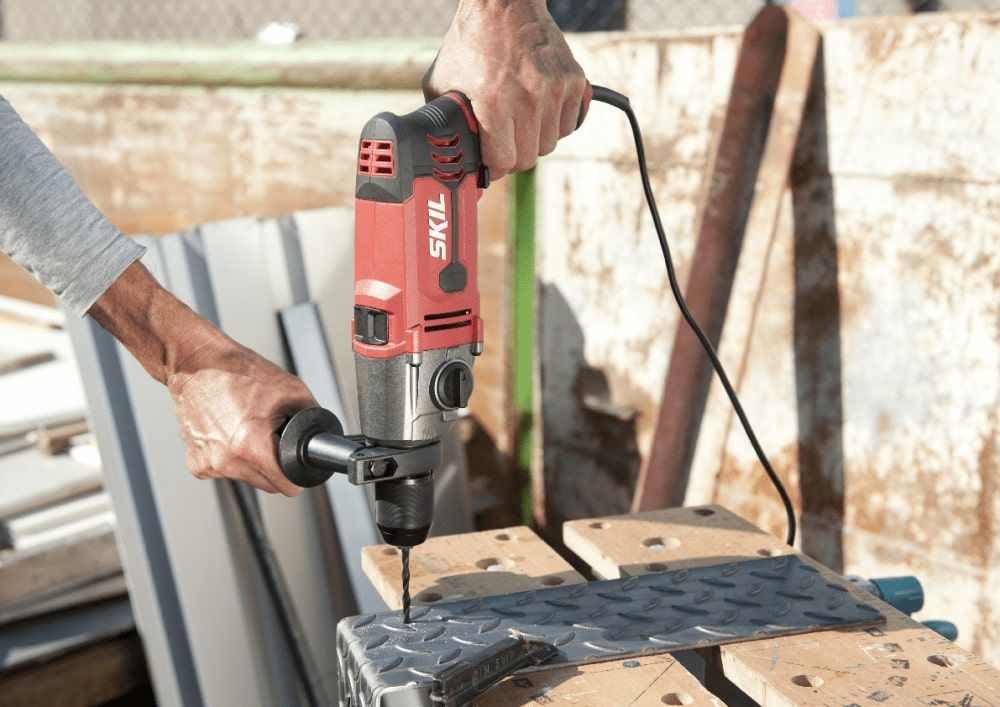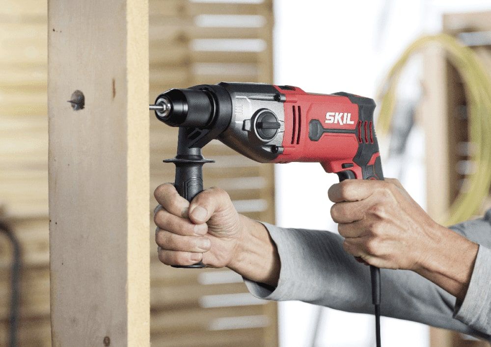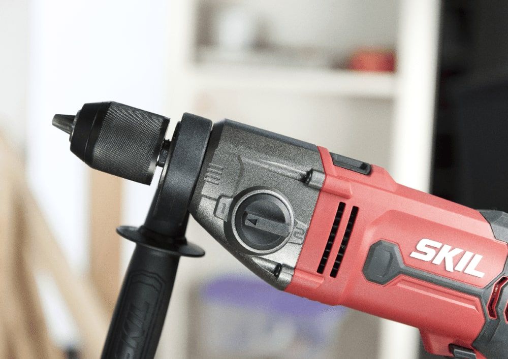 Двошвидкісний ударний дриль для швидкого та зручного свердління Дриль-перфоратор SKIL 6745 з дуже потужним двигуном, 1050 Вт, ідеально підходить для свердління цегли та кам'яної кладки, а також для свердління дерева, металу, кераміки та пластику. Інструмент має дві передачі, які можна використовувати як для швидкого свердління, так і для свердління й загвинчування в твердих матеріалах. Перфораторний механізм застосовується для свердління у цегляній кладці, і режим перфоратора може бути вимкнений для виконання звичайних свердлильних робіт та загвинчування.