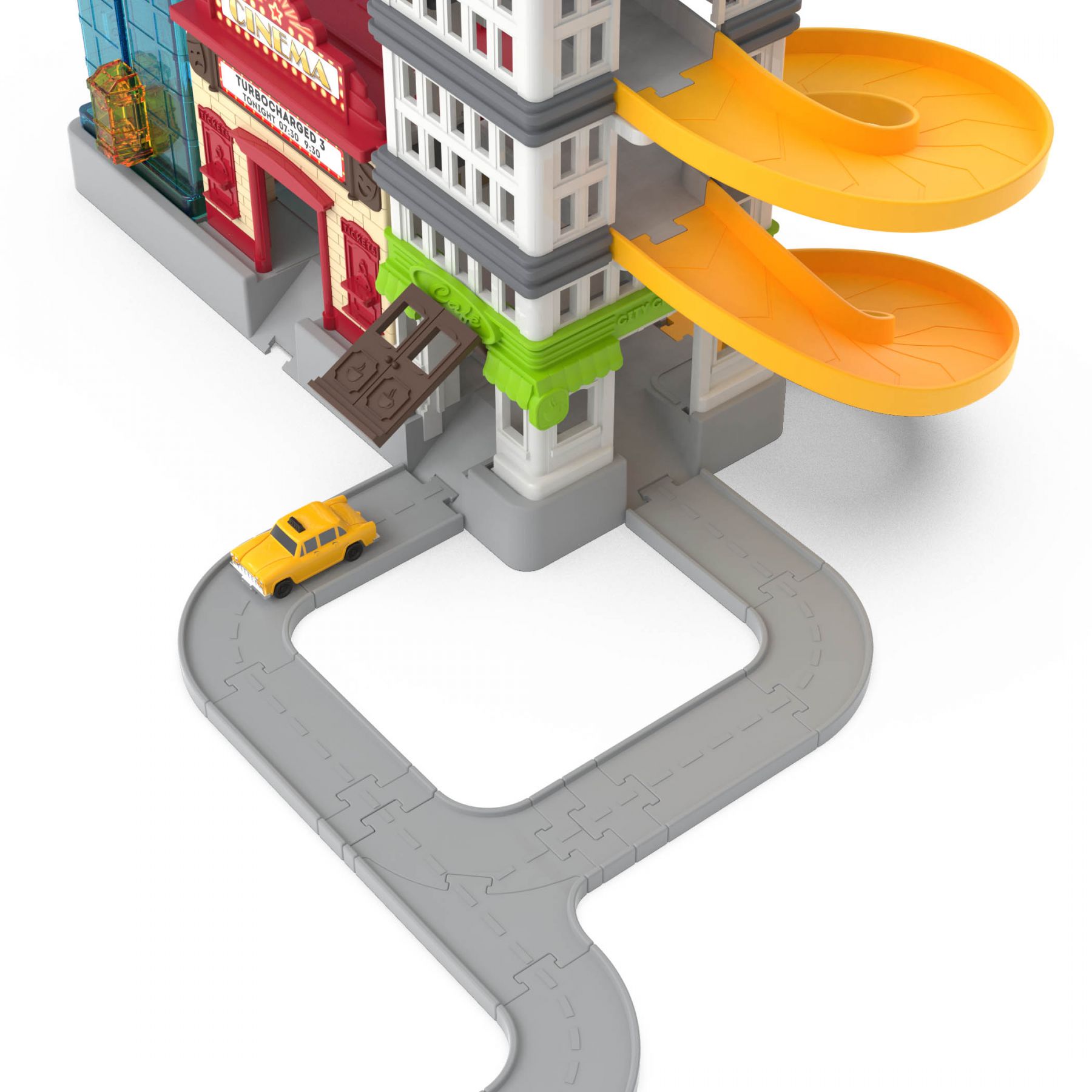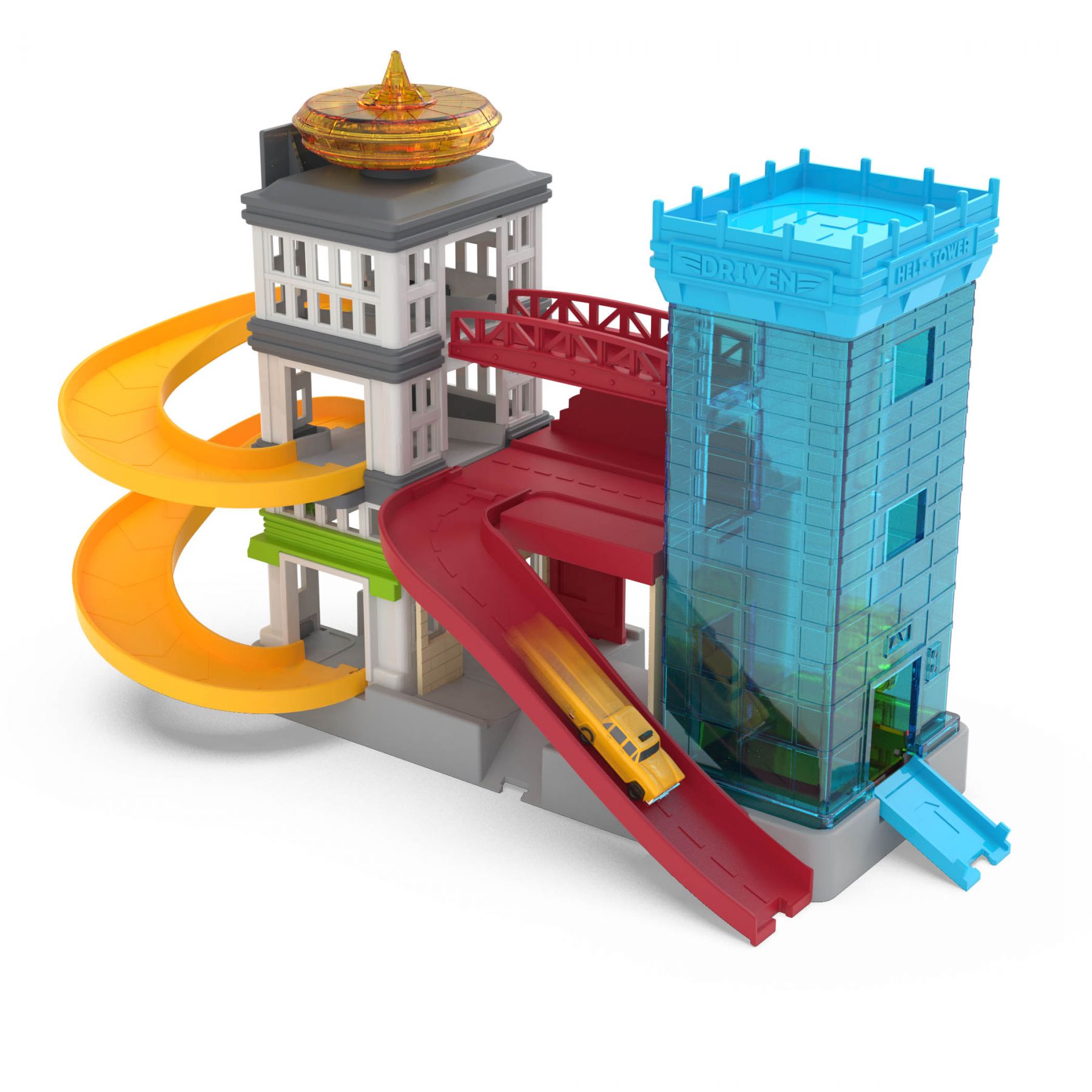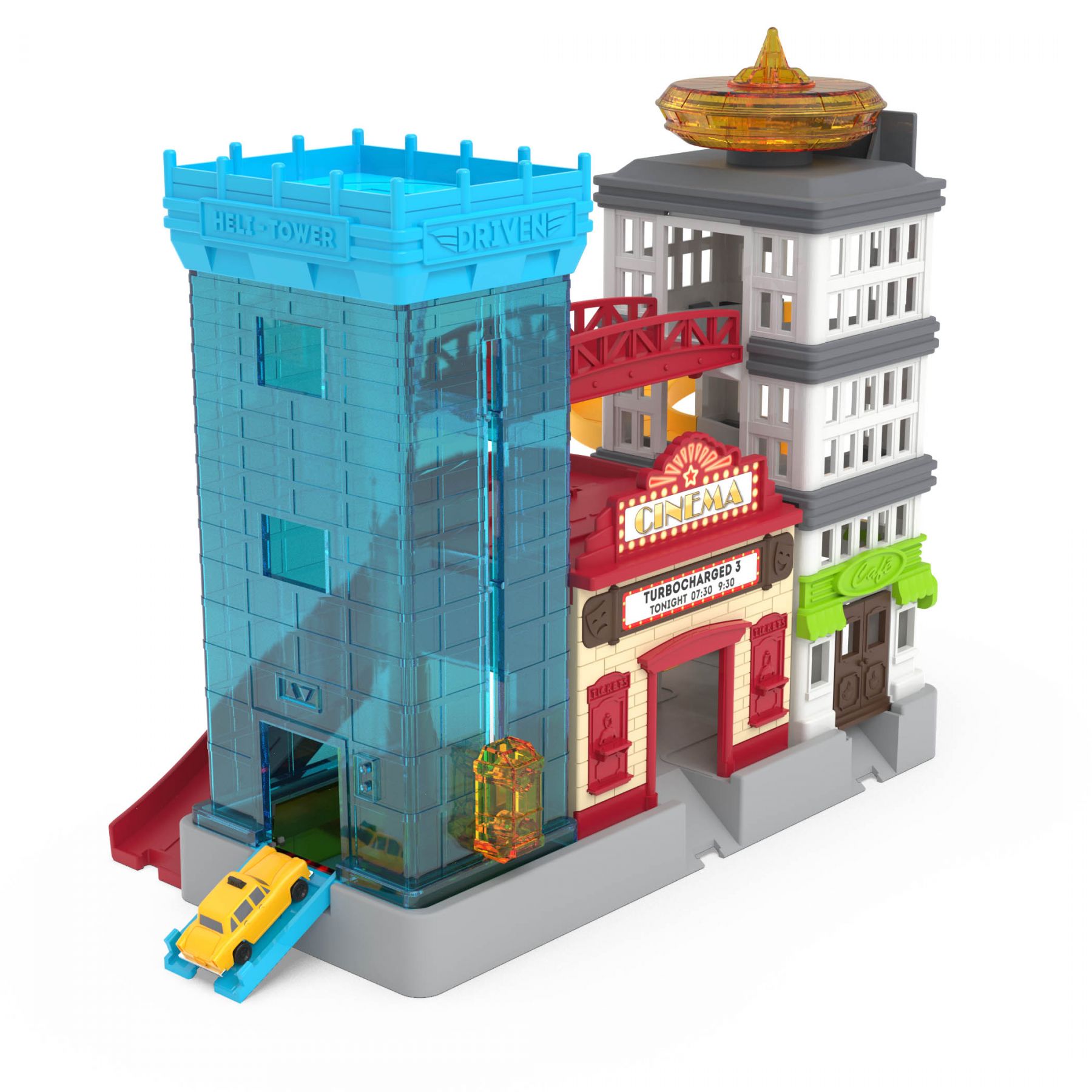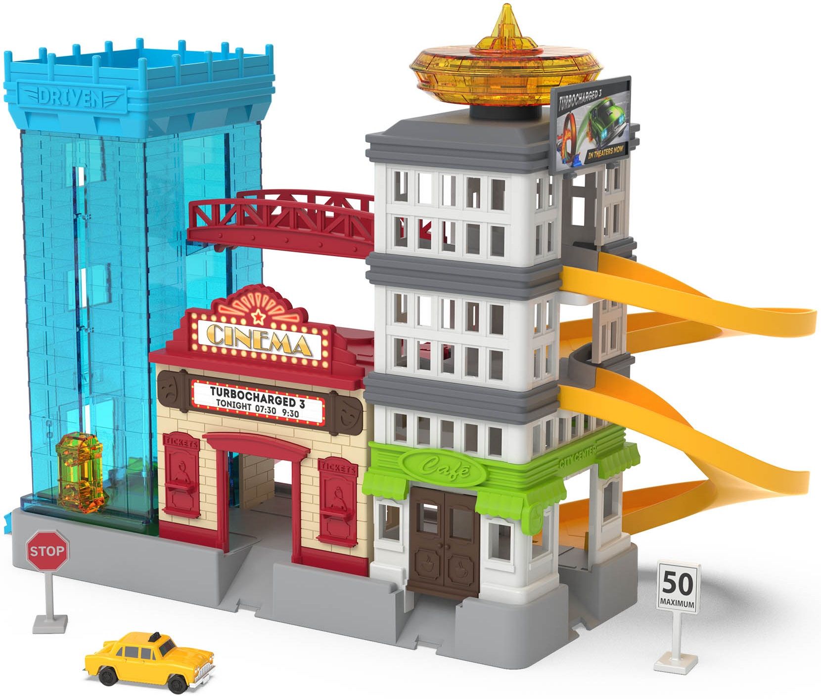 Візьміть таксі та досліджуйте місто з дитячим ігровим набором Big City Cruisin' від DRIVEN! У центрі міста є на що подивитися… Будинки, рекламні щити та яскраві вогні міста чекають, щоб ви їх виявили! Припаркуйте свій іграшковий автомобіль на парковці. Є багато місць і ліфт, щоб піднятися на верхні рівні. А ще краще, чому б не взяти таксі до міста? У цей ігровий набір входить класичне маленьке іграшкове таксі!